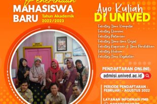 Penerimaan Mahasiswa Baru Universitas Dehasen (PMB Unived) Tahun Akademik 2022/2023 telah dibuka dengan periode pendaftaran Februari-Agustus 2022. Simak tahapan dan sayarat pendaftaran dibawah ini ya… Tahapan Pendaftaran Online: Calon Mahasiswa Mendaftar Melalui Tombol Daftar/Buat Akun Setelah selesai membuat akun, calon mahasiswa mengaktifkan akun melalui LINK yang dikirim ke email. Calon …