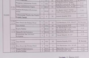 Informasi Jadwal kuliah Prodi Administrasi Publik A dan B semester Ganjil T.A 2023/2024