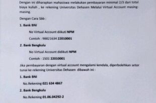 Pengumuman bagi mahasiswa yang ingin melakukan pembayaran bisa melalui Bank BNI dan Bank Bengkulu