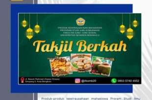 Dalam rangka mewujudkan visi Universitas Dehasen Bengkulu di Bidang Kewirausahaan dan sebagai pemenang event Entreprenuer Day Unived Tahun 2023… Mahasiswa Program Studi Ilmu Komunikasi Fakultas Ilmu-Ilmu Sosial turun ke masyarakat menunjukkan keahlian mereka berwirausaha mengisi moment ramadhan sambil belajar komunikasi pemasaran… Silakan order atau cicipi langsung makanan minuman karya mahasiswa …