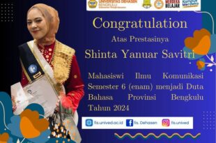 Selamat kepada Shinta Yanuar Savitri! Mahasiswa Ilmu Komunikasi semester 6 Fakultas Ilmu-Ilmu Sosial Unived Bengkulu ini baru saja meraih prestasi membanggakan sebagai Duta Bahasa Provinsi Bengkulu tahun 2024. Penobatan Shinta dilakukan oleh Kantor Bahasa Provinsi Bengkulu pada tanggal 13 Mei 2024 di Hotel Mercurce Bengkulu. Prestasi ini menjadi bukti dedikasi …