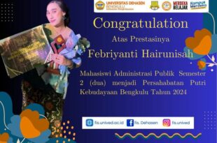 Selamat kepada Febriyanti Hairunisah! Mahasiswi semester 2 Administrasi Publik Fakultas Ilmu-Ilmu Sosial Unived Bengkulu ini baru saja meraih prestasi gemilang sebagai Persahabatan Putri Kebudayaan Bengkulu Tahun 2024. Sebuah pencapaian yang membanggakan Febriyanti, dengan kecerdasan dan dedikasinya, telah menunjukkan semangatnya dalam melestarikan budaya Bengkulu. Prestasi ini menjadi inspirasi bagi kita semua …