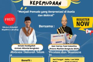 Manna, Bengkulu – Febrian Tomi Valentino, mahasiswa inspiratif dari Program Studi Ilmu Komunikasi Fakultas Ilmu-Ilmu Sosial Unived Bengkulu, baru saja berbagi pengalaman dan tips suksesnya dalam Talkshow Kepemudaan bertema “Menjadi Pemuda Yang Berprestasi di Dunia dan Akhirat”. Acara yang diadakan di Aula Yayasan Al Khair Komplek SD/SMP IT, Manna ini …
