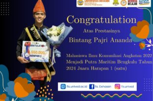 Selamat Kepada Bintang Pajri Ananda mahasiswa Ilmu Komunikasi angkatan 2022 Fakultas Ilmu-Ilmu Sosial Unived Bengkulu, atas prestasinya telah meraih Juara Harapan 1 Putra Maritim Tahun 2024, yang di selenggarakan oleh Dinas Pariwisata dan TNI AL. Prestasi ini merupakan hasil dari kerja keras, dedikasi, dan semangat Bintang yang tinggi, kami sangat …