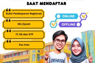 Ada 4 hal yang harus disiapkan saat mendaftar menjadi calon mahasiswa baru Universitas Dehasen Bengkulu: 1. Bukti pembayaran registrasi 2. SKL/ IJAZAH 3. Foto copy KK dan KTP 4. Pas Foto 2×3, 3×4, dan 4×6 (masing-masing 1 lembar) Pendaftaran online: admisi.unived.ac.id Pendaftaran offline: Kampus 1 Jl. Meranti Raya No. 32 …