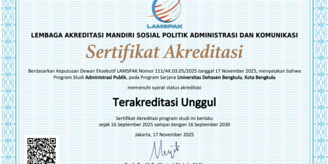 Bengkulu – Sebuah pencapaian monumental diraih Program Studi Administrasi Publik Fakultas Ilmu-Ilmu Sosial Universitas Dehasen …